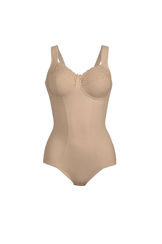 Havanna vereint sinnliche Spitze mit außergewöhnlichem Tragekomfort. Der neue Body mit Entlastungsträgern bezaubert auf ganzer Linie. Mit floraler Retro-Spitze inszeniert er ein stilvolles Dekolleté, während funktionelle Detailseine feminine Silhouette zeichnet und spürbar entlastet. Für stabilen Halt sorgt das dreigeteilte, kaschierte Unter Cup aus kräftiger Mikrofaser-Charmeuse. Ganz ohne Bügel schmiegt sich das Korselett sanft an und formt eine schöne Figur.
